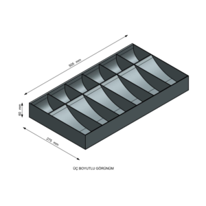6 Bölmeli Komple Metal Çekmece İçi Para Düzenleyici Genişlik: 50.5 cm Derinlik:27,5 cm Yükseklik: 6 cm Bozuk ve kağıt para bölmeleri rahatlıkla para alabilmeniz için rampalı olarak üretildi. 1. sınıf elektrostatik toz boyalıdır.Para tutucular nikel kaplama olup kararma ve paslanma yapmaz.